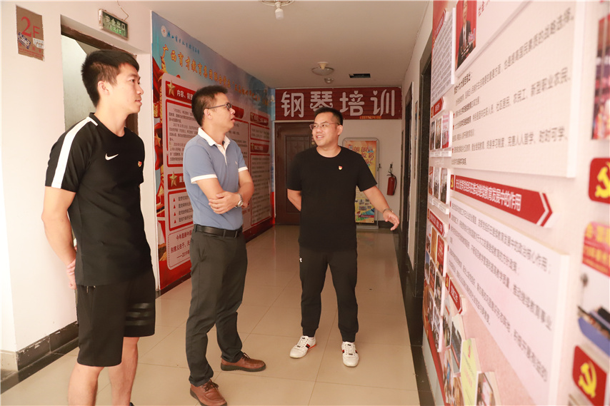 10月12日,市委教育工委、市教育局黨組“不忘初心、牢記使命”主題教育領(lǐng)導(dǎo)小組第二巡回指導(dǎo)組組長(zhǎng)、市一職校黨總支副書記周軼群,組員市九中體衛(wèi)藝主任韋思律蒞臨集團(tuán)柳州本部檢查指導(dǎo)主題教育工作。集團(tuán)聯(lián)合黨委書記、董事長(zhǎng)蔣華陪同指導(dǎo)。