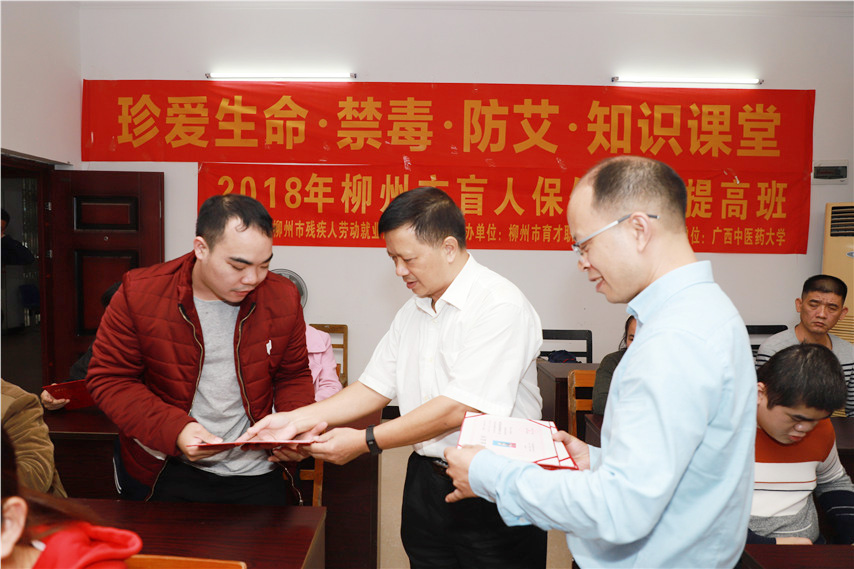 10月25日,由柳州市殘疾人勞動就業(yè)服務(wù)中心主辦、柳州市育才職業(yè)培訓(xùn)學(xué)校承辦、廣西中醫(yī)藥大學(xué)協(xié)辦、為期十天的2018年柳州市盲人按摩保健提高班,在柳江區(qū)就業(yè)服務(wù)中心一樓順利結(jié)業(yè)。參加培訓(xùn)班的20余名殘疾人學(xué)員通過培訓(xùn)和考核,完成規(guī)定學(xué)時和課程學(xué)習(xí),獲得了廣西中醫(yī)藥大學(xué)繼續(xù)教育學(xué)院《盲人保健按摩提高班結(jié)業(yè)證書》。