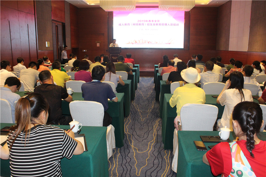 6月13-14日,廣西廣播電視大學(xué)2019年春季全區(qū)成人教育(網(wǎng)絡(luò)教育)招生及教務(wù)管理人員培訓(xùn)會(huì)議在梧州順利召開,廣西廣播電視大學(xué)副校長董塔健、網(wǎng)絡(luò)教育學(xué)院院長陶群、副院長唐建軍及各教學(xué)點(diǎn)負(fù)責(zé)人和相關(guān)管理人員80余人參加了會(huì)議,育才副校長王志男、南寧運(yùn)營中心副總監(jiān)劉婉麗參加了會(huì)議,會(huì)議由陶群院長主持。
