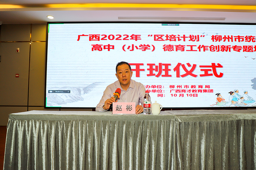 10月10日上午,由柳州市教育局主辦,廣西育才教育集團(tuán)承辦的“廣西2022年“區(qū)培計(jì)劃”柳州市統(tǒng)籌項(xiàng)目--高中、小學(xué)德育工作創(chuàng)新專題培訓(xùn)班”在柳州市柏曼酒店順利開(kāi)班,廣西育才教育集團(tuán)黨委委員、培訓(xùn)學(xué)院院長(zhǎng)趙彬出席了開(kāi)班儀式,并作開(kāi)班動(dòng)員講話。本次培訓(xùn)為期4天,共110名柳州市高中和小學(xué)的德育干部參加了培訓(xùn)。