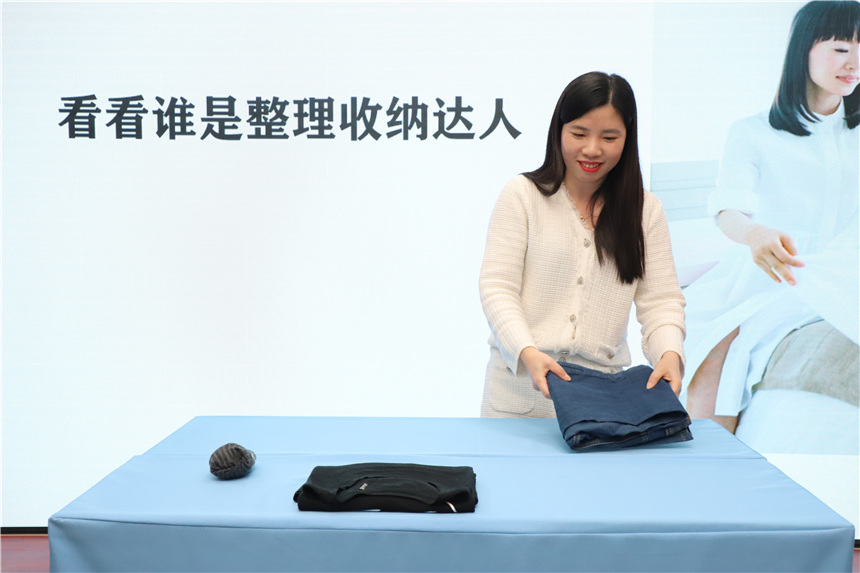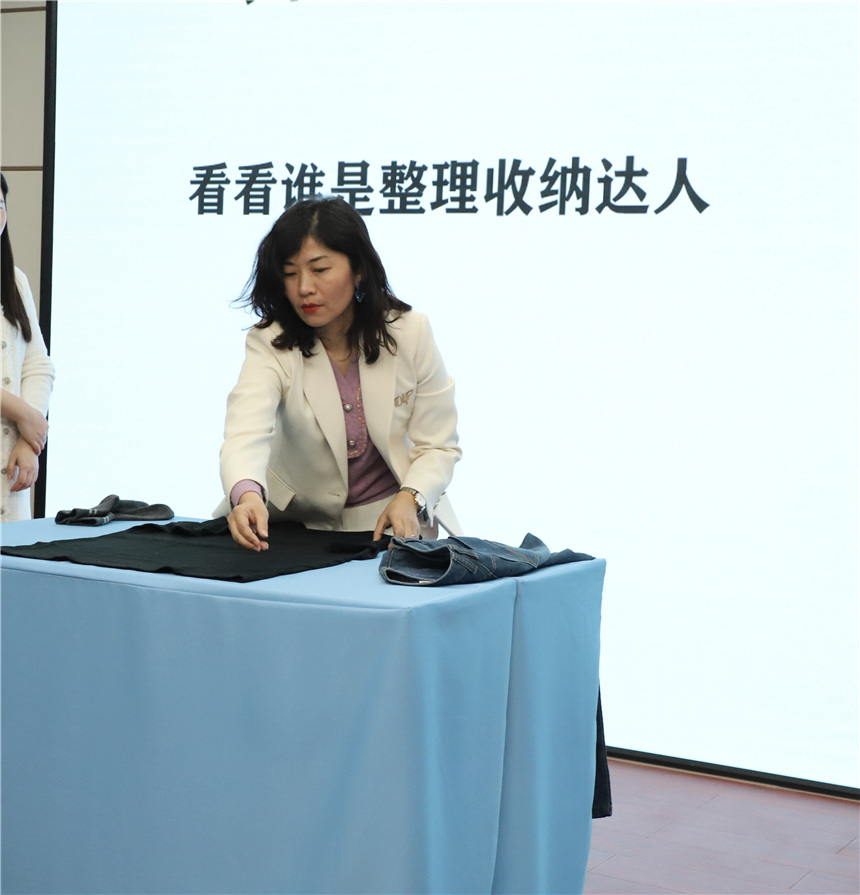 本次培訓(xùn)以“講座+實(shí)操”的形式,劉老師從“斷舍離”理念引入,為大家普及了整理收納的含義和基本原則,講解了居家整理的六個(gè)步驟:規(guī)劃、清空、分類、篩選、收納、維持。指導(dǎo)大家使用科學(xué)收納方法更合理、更高效、更舒適地規(guī)劃生活。劉老師還現(xiàn)場(chǎng)演示了T恤、褲子、襪子、內(nèi)衣褲的立式折疊方法,讓學(xué)員們受益頗多?;?dòng)實(shí)操環(huán)節(jié),大家紛紛麻利地動(dòng)起手來,學(xué)以致用。看到疊得整整齊齊的衣襪,大家成就感十足,紛紛表示:“參加這次活動(dòng)太有收獲了,學(xué)到了非常實(shí)用的收納整理技巧,回去之后就把家整理起來?!?/span>