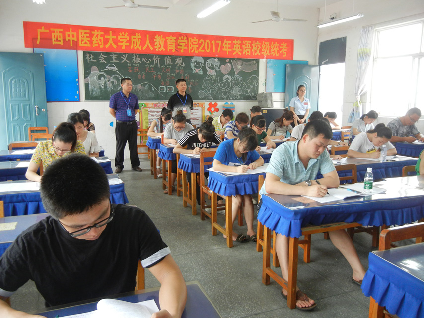 7月16日上午,廣西中醫(yī)藥大學(xué)成人教育學(xué)院柳州育才考點(diǎn)2017年英語校級(jí)統(tǒng)考(學(xué)位外語)考試順利舉行,廣西中醫(yī)藥大學(xué)成人教育學(xué)院副書記、副院長覃振林、教務(wù)處莫老師到考點(diǎn)巡考。