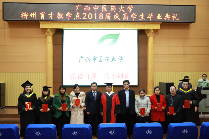 1月21日下午,廣西中醫(yī)藥大學育才教育校外輔導站2018屆成高學生畢業(yè)典禮暨學位授予儀式在柳州總部隆重舉行。廣西中醫(yī)藥大學直屬黨委書記、成人繼續(xù)教育學院院長、博士生導師、二級教授韋艾凌、副院長黃瑞誠、院長助理、培訓部主任楊繼峰出席了畢業(yè)典禮,廣西育才教育黨支部書記、輔導站站長蔣華老師、育才教育常務副校長李彩梅以及來自柳州醫(yī)學行業(yè)的100多名專本科畢業(yè)生代表參加了畢業(yè)典禮。